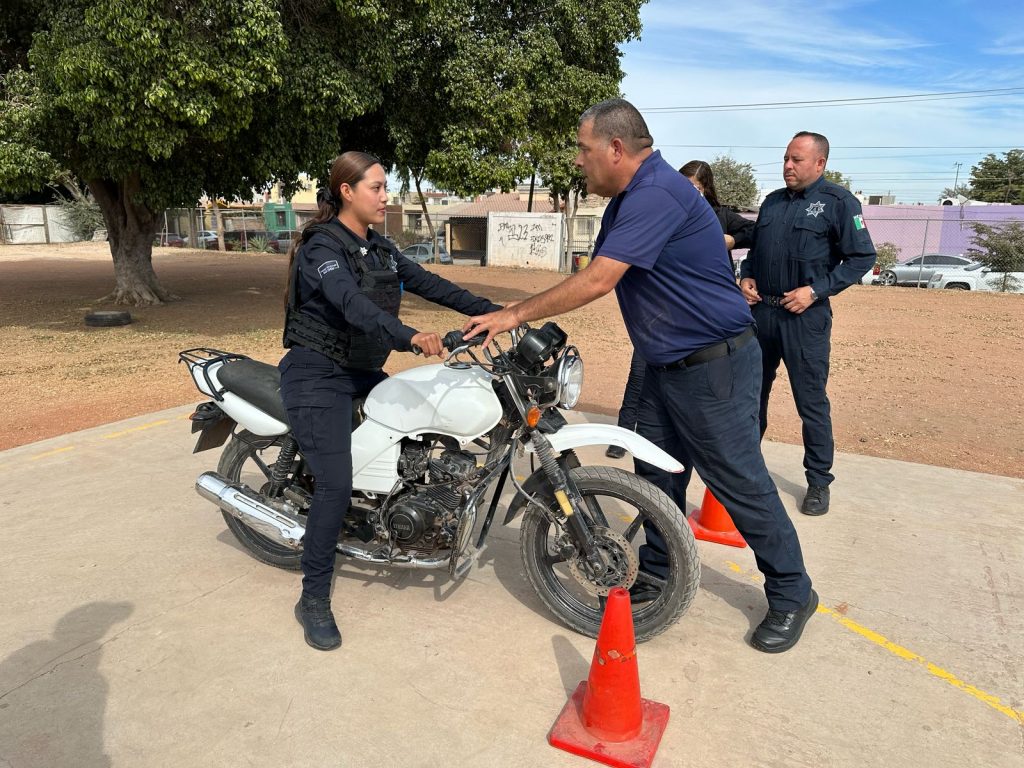 Cd. Obregón, Sonora.- Para brindar un mejor servicio a la sociedad y fortalecer las habilidades de las y los elementos de la Secretaría de Seguridad Pública Municipal, se lleva a cabo una capacitación especializada en manejo de motocicleta, impartida por instructores de la Academia de Policía Municipal.