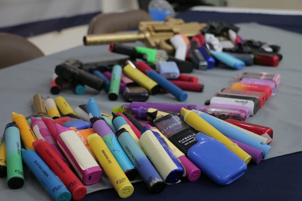 En total, se recolectaron 92 vapeadores electrónicos y 8 réplicas de armas en secundarias del Municipio, con el objetivo de sensibilizar a las y los jóvenes sobre los peligros asociados al uso de estos dispositivos y retirarlos de los planteles educativos.
