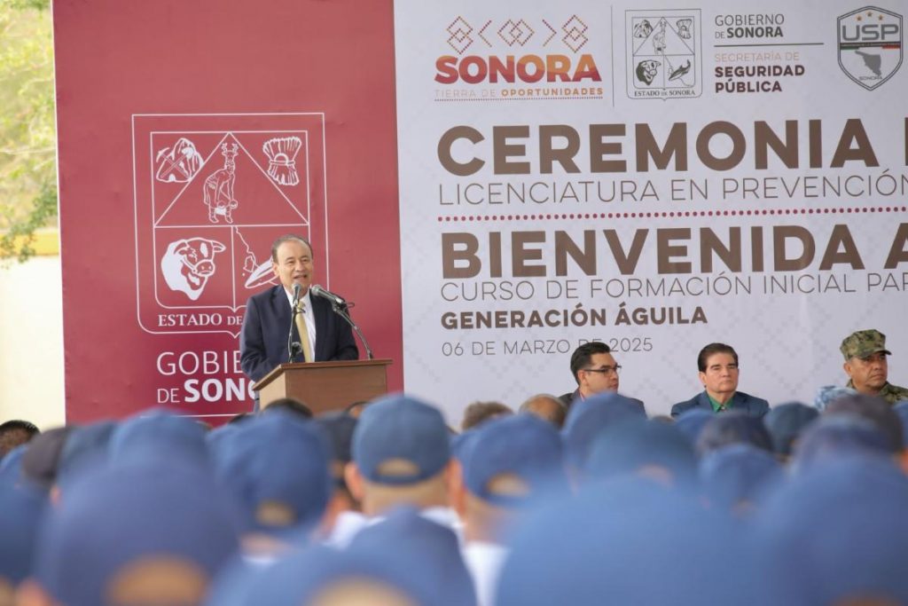 Durante el evento, realizado en la explanada de la Universidad de la Seguridad Pública del Estado de Sonora (USP), el mandatario estatal destacó la importancia de la profesionalización de los cuerpos de seguridad para la construcción de un Estado más seguro para la ciudadanía.