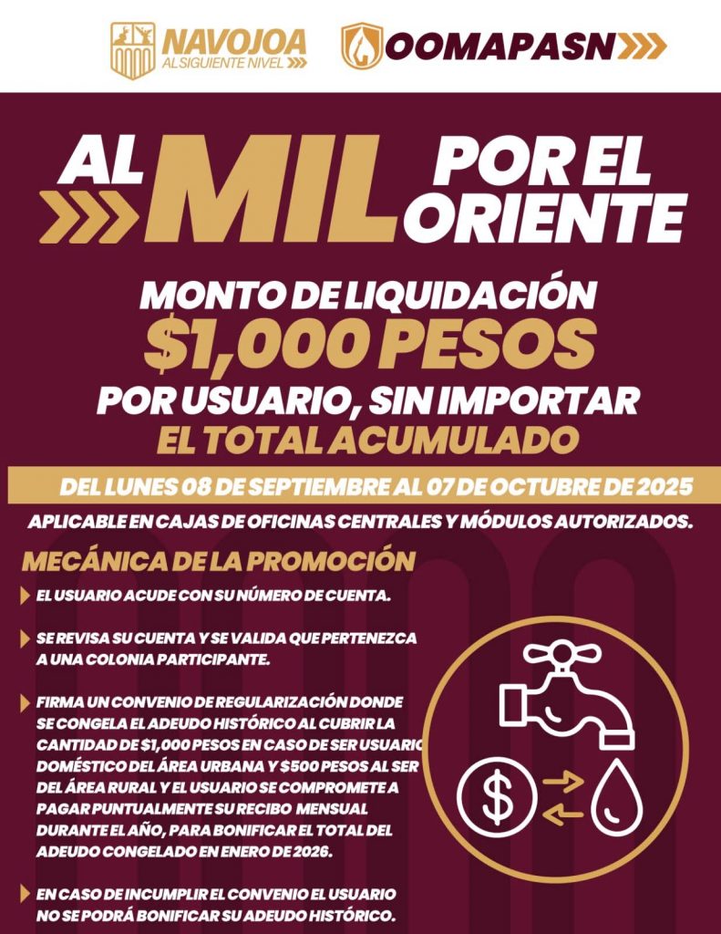 $500 pesos (localidades rurales), podrás liquidar tu adeudo histórico y regularizar tu cuenta de agua potable.